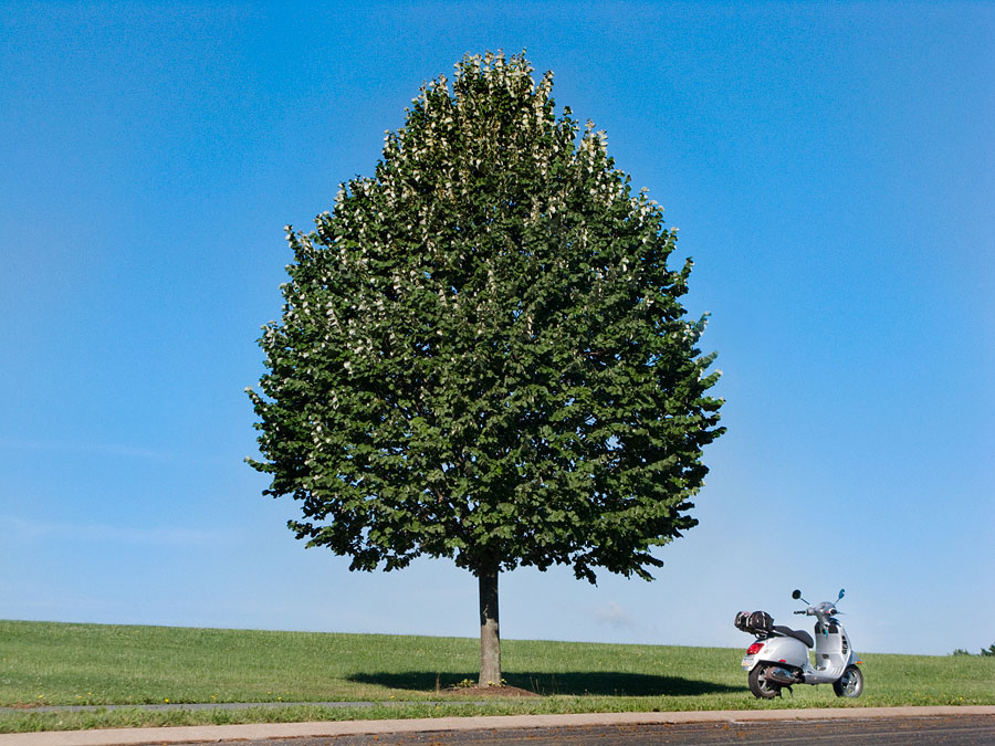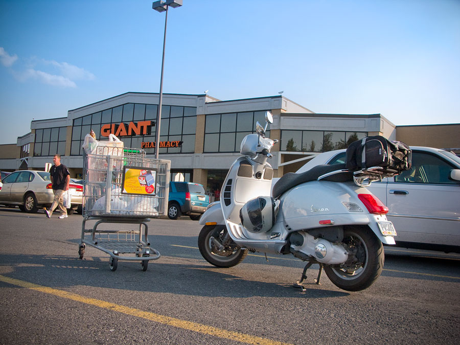 A Vespa suits my personal strategic initiative of going slowly and keeping things simple. And it yields dividends of solitude, play, and smiles. In a car I probably wouldn’t notice the blue, portable toilets and probably never would stop to make a picture. I’d just miss the odd juxtaposition of form and color. Does it matter? For me noticing little details, stopping, and making pictures charges my internal batteries. It lets me chew on the moment. And it only costs a few minutes time on the way home from work. The scooter has managed to help me pry open one door on the way towards simplicity.