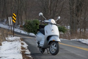 The Vespa still sits in the garage waiting for me to engage in repair actions and return to the cold roads of winter. Reaching into the archives from a few years ago I retrieved this image of the scooter hauling home a Christmas tree. After 8 weeks of Vespa free living I have begun to forget how capable that machine is…