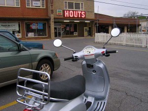 From there I rode to a local orchard for a fresh Red Delicious apple. I’m always amazed at how good an apple is when it’s fresh. From there on to the local Vespa dealer to check out a moving sale they were having. I knew there wouldn’t be anything I wanted but I have to look anyway. I only have two things on my want list—a small MotoFizz seat bag and a pair of snowmobile mittens. What happened to me? My list used to be pretty long. I guess I’m getting more content in my growing years.