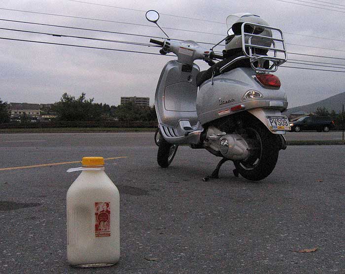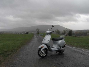 The LX150 ride is luxurious ride compared to the SuperMoto. The Vespa seat is soft and forgiving compared to the hard, narrow seat on the Suzuki. The Vespa riding position is flat out more comfortable. I felt strangely exposed with my feet on pegs rather than hidden behind the cowl of the scooter. The bars on the Suzuki are extremely wide and I found my shoulders aching after a few miles. And shifting – I just found it annoying. I’m sure I would fall into the groove again but why bother….Finally, the big tires on the Suzuki don’t allow for the quick and nimble movements of the scooter. I guess there is a lot of centrifugal force to overcome.