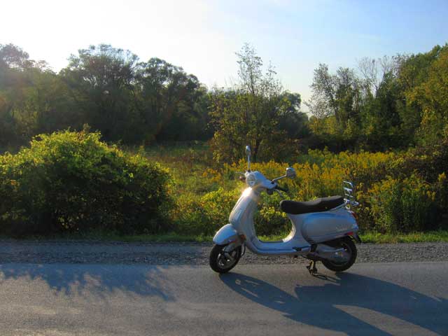 There is no doubt I save at the fuel pump. My Ford Ranger gets about 20 miles per gallon. The Vespa gets around 68. On the highway the difference is even greater— 24 vs. 90. Some quick math. Last year I rode the scooter about 7000 miles. My truck 1200 (at least 600 of that put on by friends or family needing a truck). The truck uses regular fuel so let’s use 2.30 per gallon for calculation. Total fuel cost last year (using city mileage figure)— $138.00. Pretty cheap. The scooter on the other hand using premium fuel at 2.50 per gallon cost $237.00. Still pretty cheap.