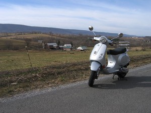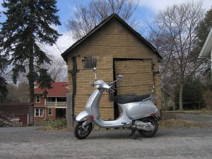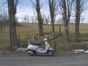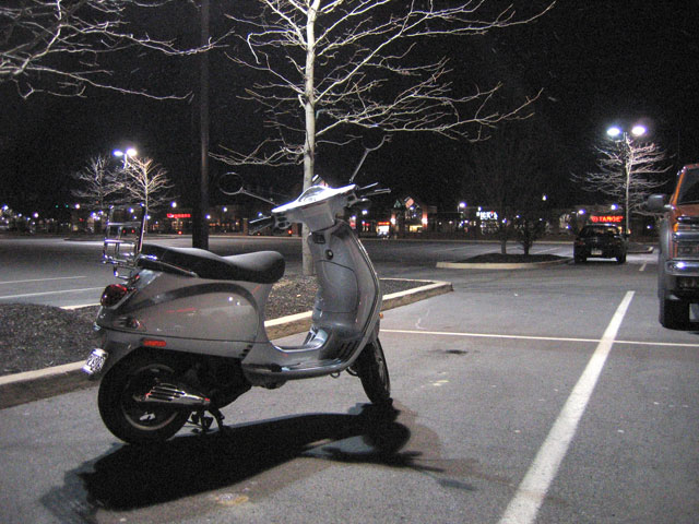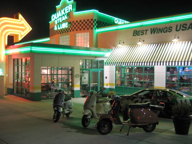 This past Monday evening was the season’s first “Bike Night” at the Quaker Steak and Lube. I was excited to see the new Vespa Scooters that would be on display but even more excited to see all the motorcycles that would be there and hear some riding stories. The sum total ended up being my Vespa LX150, my friend Paul’s Vespa ET4 and another friend Cliff’s vintage Lambretta. Not another rider in site anywhere. The temperature was around 25 degrees Fahrenheit and a few snowflakes spitting in the air but the road was dry as a bone. There were lots of owners about just no riders. I guess I’ll have to return when the temperature is 80 and you can ride in short pants and no helmet…..